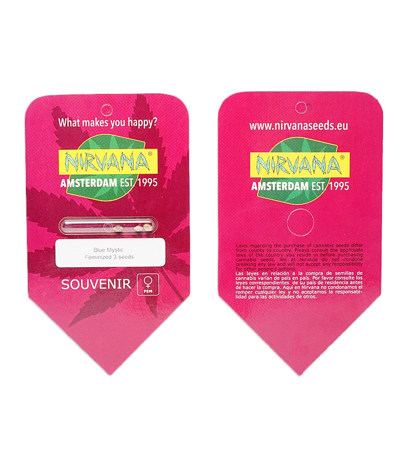 Семена конопли Blue Mystic fem от Nirvana. Красивый «голубой» сорт. В помещении через 7-9 недель цвета приносит 400-500г/м2. Также неплохо растет в ауте.