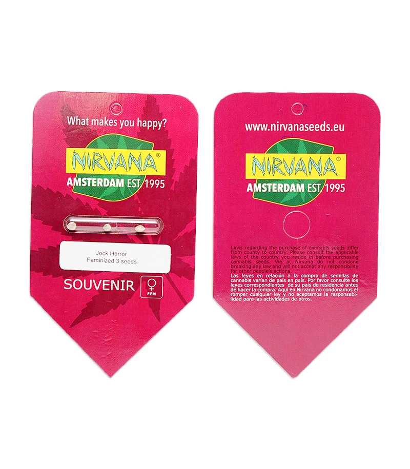 Семена конопли Jock Horror fem от Nirvana. Сативный гибрид, производит невероятное количество смолы. Уникальный по вкусу и аромату. Вызывает прилив эйфории.