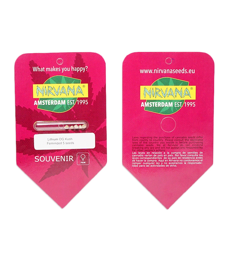 Семена конопли Lithium OG Kush fem. Невысокий, индика доминантный и вполне неприхотливый сорт. Обладает неплохой урожайностью, 450-550 г/м² в помещении.