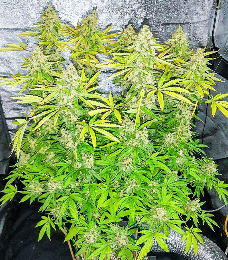 Это сорт для тех кто ценит больше ароматность и плотность шишек, чем итоговую массу, нет выхлоп по итогу неплохой, но качество шишек это первое что я оценил в этом сорте. Убежден, что плотные, смолистые, вкусные на вкус и запах шишки это показатель генетики, а большую урожайность можно получить практически с любого куста, если руки нужным концом в плечи вставлены. Поднимал на гидре. 4 недели веги. хотя можно было и 3. Подкармливал Advanced Nutrients с классическим трехкомпонентным сетапом (Grow, Micro, Bloom). PH держал в районе 5.8-6.0. Цветение заняло 9 недель. С квадрата вышло около 500 гр. После сушки и пролечки аромат стал еще сильнее, при открытии банки прям ударяет в нос запах мандарина и каких то трав!