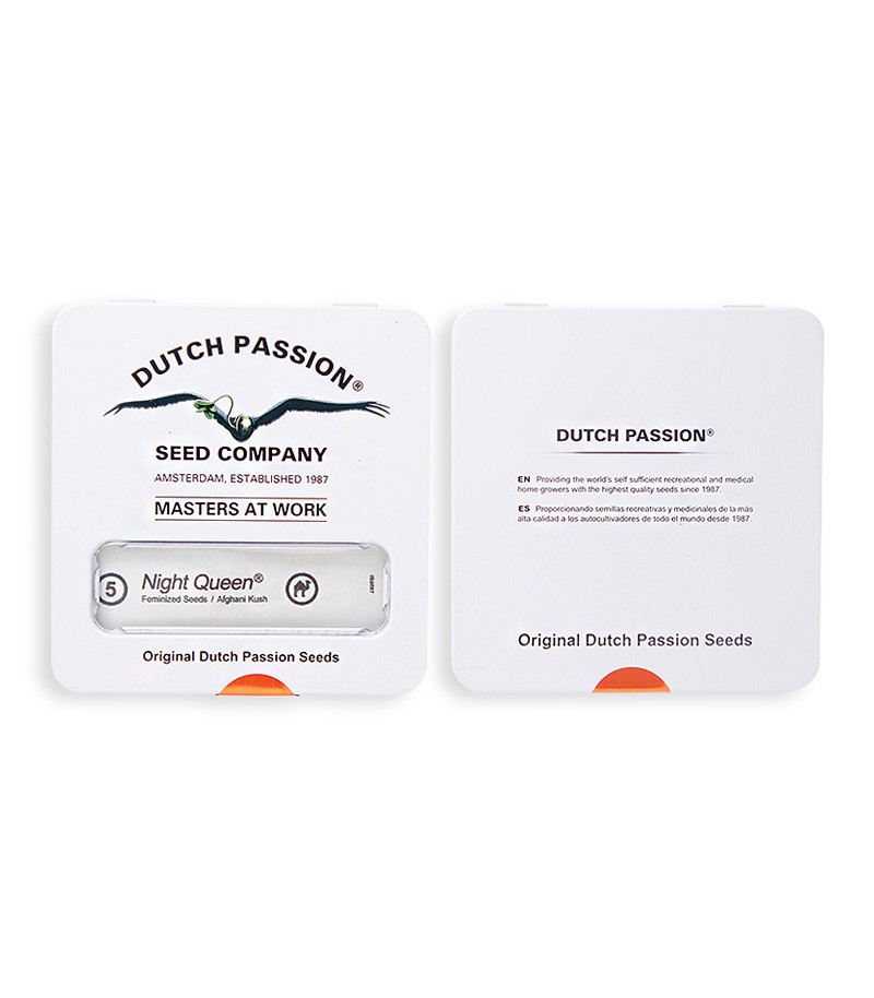 Night Queen («Королева ночи») – сорт каннабиса с преобладающими характеристиками афганской Индики. Это новая версия классического сорта 80-х годов прошлого века. Данный сорт отсутствовал на рынке семян каннабиса более 10 лет, прежде чем штамм вернулся на прилавки кофешопов. Селекционерами Dutch Passion был получен легкорастущий штамм, устойчивый к плесени и вредителям. Данный сорт на 95% состоит из индики и на 5% из сативы, и ни в чем не уступает Mazar. Содержание ТГК, измеренное в независимой лаборатории, составляет 18-20%.