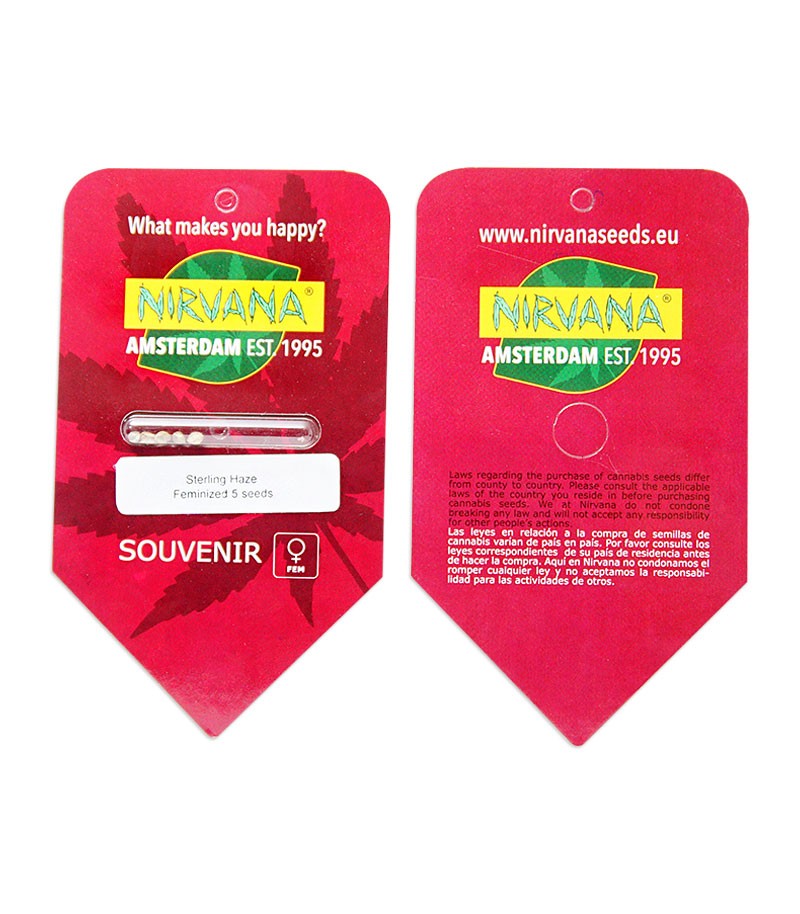 Семена конопли Sterling Haze fem от Nirvana. Сорт нуждается в обилии тепла и света, поэтому лучше выращивать в помещении. Воздействие – мощная эйфория, ТГК 22%.