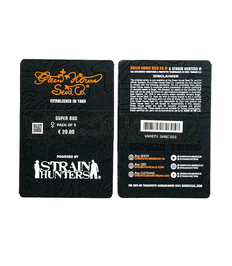 Быстрорастущая девочка Super Bud пригодна для выращивания в любых условиях. Невысокие, но развитые кустики цветут 8 недель и приносят хороший урожай. У этого сорта ярко выражены свойства Индики, способствующие глубокому телесному расслаблению. Может применяться от стресса и бессонницы.