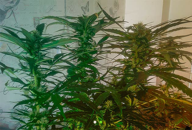 На фото хорошо видно насколько изменились растишки за две недели. Они вытянулись и уже начали формировать соцветия. Сейчас их рост около 70 сантиметров. Кстати, во время этого грова отметил интересный момент, на который не обращал внимания ранее. Листва у моей 100 % индики довольно узкая, как у сативных сортов. Возможно, это фенотип материнского растения, но выглядит интересно. По уходу дела удалил немного листвы из середины, нижнюю часть практически оголил, полив по прежней схеме.