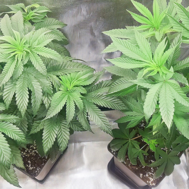 В начале шестой недели провёл топпинг, удалив макушки на обоих кустах. После обрезки дал по 400 мл воды с Bio Enhancer, концентрация 0,4 мл/л. Как только растихи пришли в себя от топпинга, заметил небольшую разницу фенотипов. Не могу сказать, что это плохо, так даже интереснее. Поливаю кусты раз в 2-3 дня, чтобы не залить, ориентируясь на просыхание почвы. Стабильность условий и умеренная подкормка дают о себе знать: кусты не стрессуют, выглядят здоровыми и постепенно развиваются.
